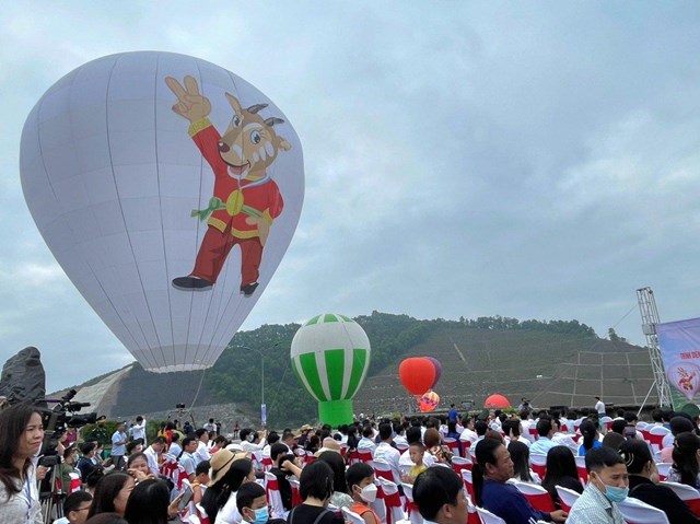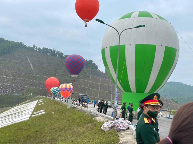 Sáng 7/5, tại đập chính công trình thủy lợi Ngàn Trươi, UBND huyện Vũ Quang phối hợp với các đơn vị liên quan tổ chức trình diễn bay khinh khí cầu “Cuộc dạo chơi của Sao la - Kỳ lân châu Á” chào mừng Đại hội thể thao Đông Nam Á - Sea Games 31.