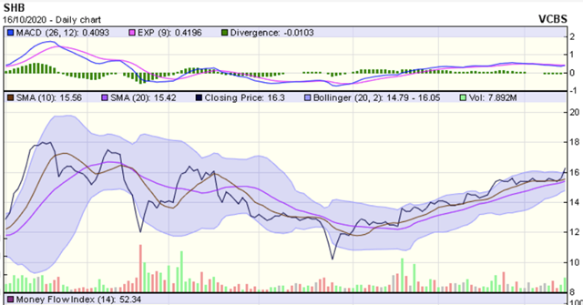 Từ cuối tháng 3 đến giữa tháng 4, quãng căng thẳng nhất của dịch Covid-19, SHB của Ngân hàng Sài Gòn - Hà Nội (SHB) đã tạo cú nảy chưa từng có trong lịch sử, từ tầm 7.500 đồng lên tới trên 17.000 đồng/cổ phiếu. Tính bền vững của nó vẫn thể hiện cho đến nay, khi mức giá khá cao quanh 16.000 đồng được duy trì, hoàn toàn để lại sau lưng quãng nhiều năm chìm dưới mệnh giá.